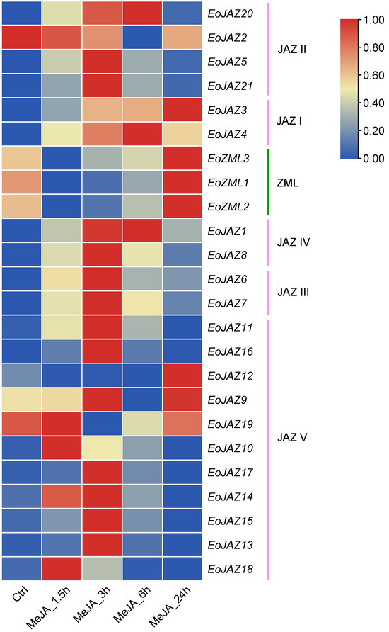 Expression patterns of the EoTIFY family genes under MeJA treatment.