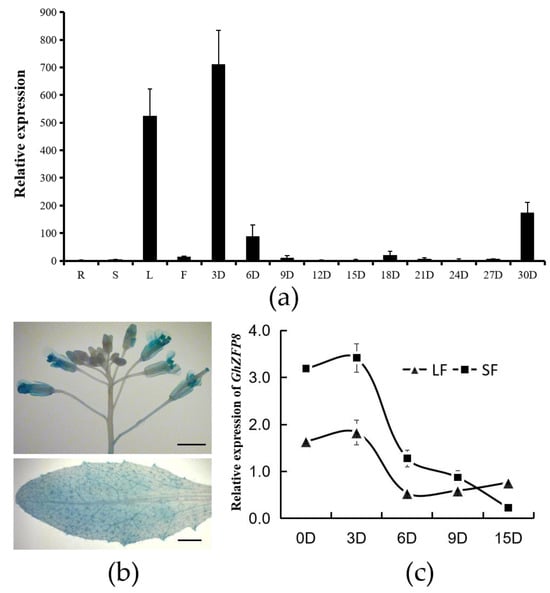 2.1. The Expression Pattern of GhZFP8 in Different Organs