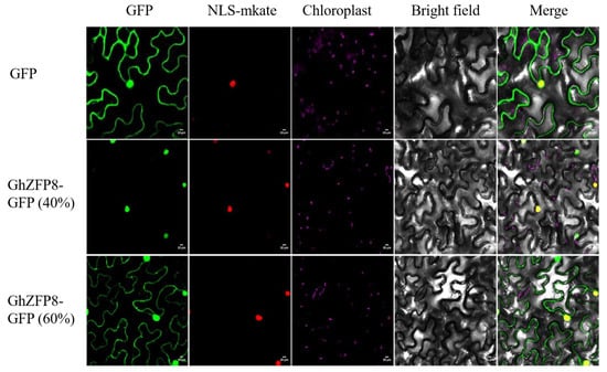 2.3. Subcellular Localization of GhZFP8 in Tobacco Leaves