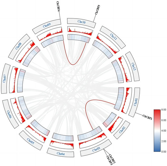 2.5. Collinearity Analysis and Chromosomal Localization of CbCBF Genes