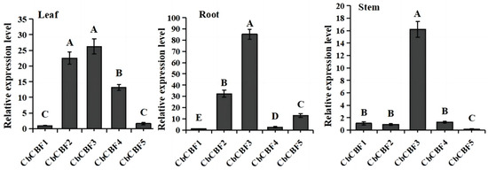 2.6. Tissue-Specific Expression Patterns of CbCBF Genes