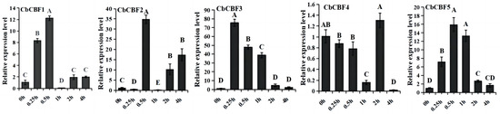 2.7. Expression Patterns of CbCBF Genes in Cold Stress