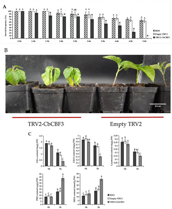 2.9. Silencing the CbCBF3 Gene Reduces Cold Resistance in C. baccatum