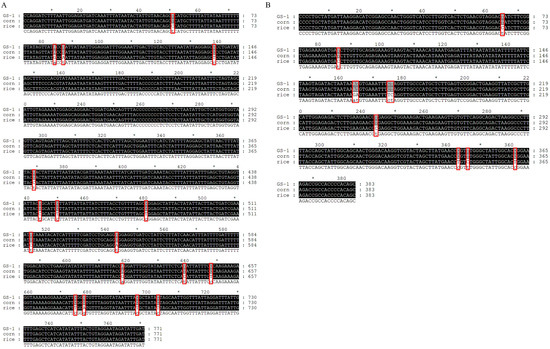 - Lu, Y.J.; Kochert, G.D.; Isenhour, D.J.; Adang, M.J. Molecular characterization of a strain-specific repeated DNA sequence in the fall armyworm Spodoptera frugiperda (Lepidoptera: Noctuidae). Insect. Mol. Biol. 1994, 3, 123–130. [Google Scholar] [CrossRef] [PubMed]