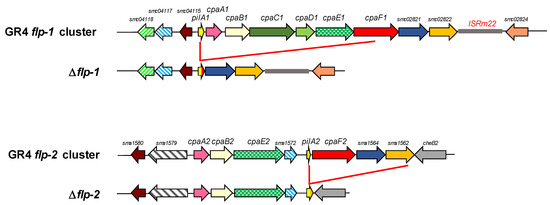 2.2. Both flp-1 and flp-2 Clusters Contribute to T4cP Production in S. meliloti GR4