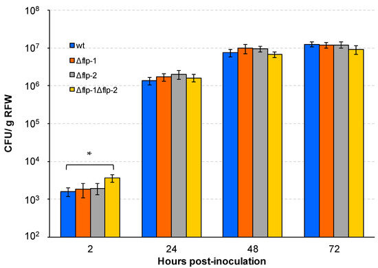 - Nykyri, J.; Mattinen, L.; Niemi, O.; Adhikari, S.; Kõiv, V.; Somervuo, P.; Fang, X.; Auvinen, P.; Mäe, A.; Palva, E.T.; et al. Role and regulation of the Flp/Tad pilus in the virulence of Pectobacterium atrosepticum SCRI1043 and Pectobacterium wasabiae SCC3193. PLoS ONE 2013, 8, e73718. [Google Scholar] [CrossRef]