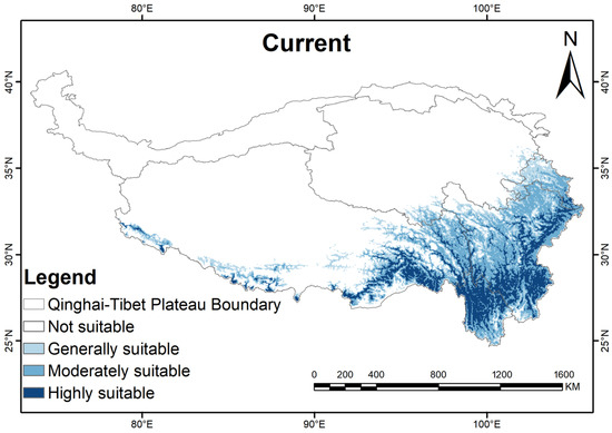Distribution of potential suitable areas of the QTP region of G.orchidis under the current climate scenario.