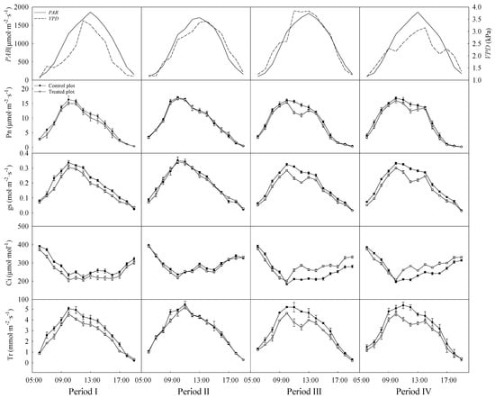 3.2. Variations in the Diurnal Courses of Photosynthetic Parameters