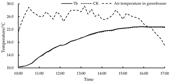 The system water temperature change after the heat exchanger surface was darkened. Tb, the system with darkened heat exchanger; CK, the system with undarkened heat exchanger.