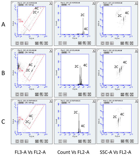 - Greilhuber, J.; Temsch, E.M.; Loureiro, J.C.M. Nuclear DNA Content Measurement. In Flow Cytometry with Plant Cells: Analysis of Genes, Chromosomes and Genomes; John Wiley & Sons: Hoboken, NJ, USA, 2007; pp. 67–101. [Google Scholar]