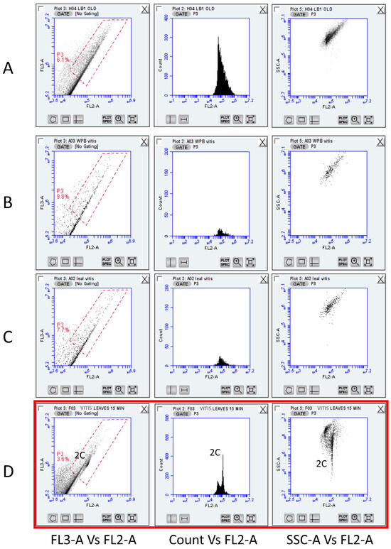 - Hermawaty, D.; Considine, J.A.; Considine, M.J. An Evaluation of Nuclei Preparation of the Dormant Axillary Bud of Grapevine for Cell Cycle Analysis by Flow Cytometry. Front. Plant Sci. 2022, 13, 834977. [Google Scholar] [CrossRef]