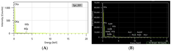 EDX composition of the greater celandine (A) and CG-AuNPs carrier system (B).