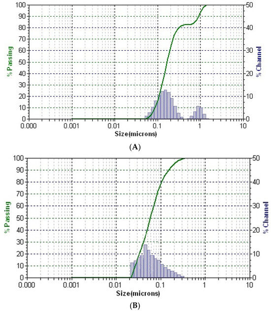 The distribution of particles in solution for all samples is presented in Figure 7.