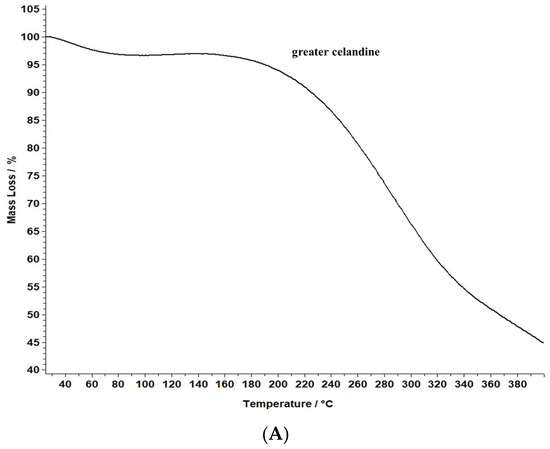A comparative evaluation was conducted to determine the thermal stability of the novel carrier system and greater celandine and to identify the chemical changes. The results are presented in Figure 8.