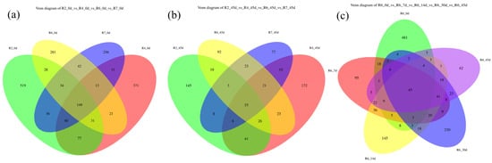 Venn diagram of feature distributions. Note: Different colors represent different mowing periods and silage times. Data of all groups are described as the average (n = 3), the following figures are the same.