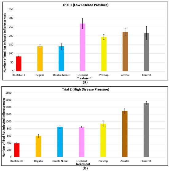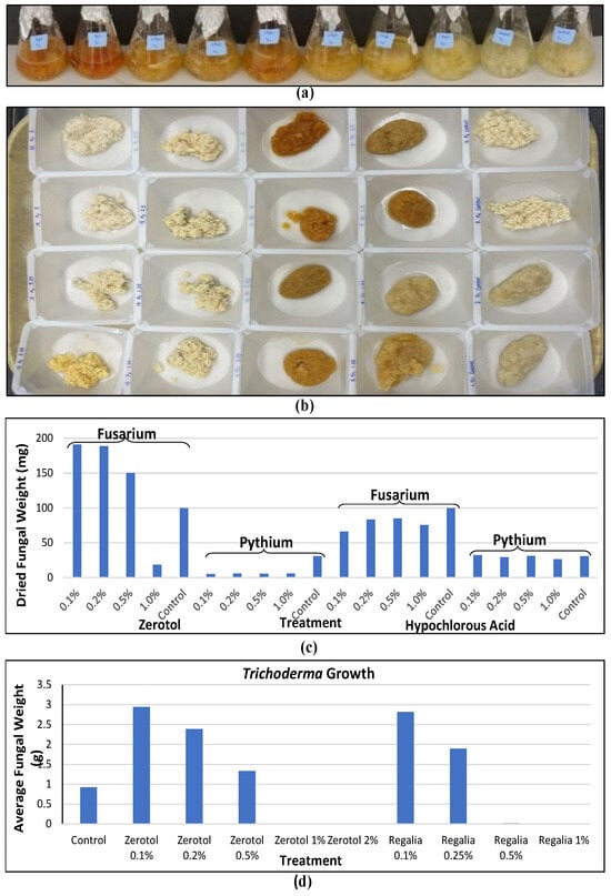 - Scott, C.; Punja, Z.K. Biological control of Fusarium oxysporum causing damping-off and Pythium myriotylum causing root and crown rot on cannabis (Cannabis sativa L.) plants. Can. J. Plant Pathol. 2023, 45, 238–252. [Google Scholar] [CrossRef]