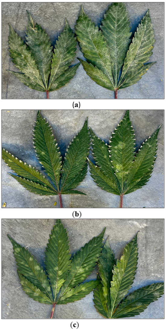 - Scott, C.; Punja, Z.K. Evaluation of disease management approaches for powdery mildew on Cannabis sativa L. (marijuana) plants. Can. J. Plant Pathol. 2020, 43, 394–412. [Google Scholar] [CrossRef]
