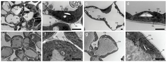 - Kirchhoff, H. Chloroplast ultrastructure in plants. New Phytol. 2019, 223, 565–574. [Google Scholar] [CrossRef]