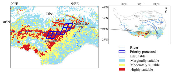 Stable potential suitable areas and priority protected areas.