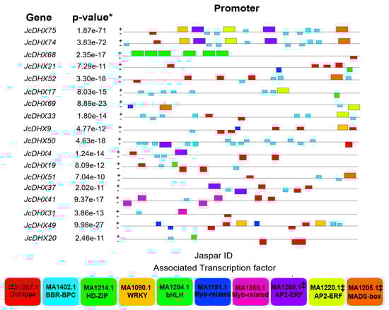 3.2. Analysis of JcDHX Gene Promoter Regions