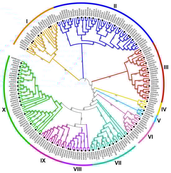- Cai, J.; Meng, X.; Li, G.; Dong, T.; Sun, J.; Xu, T.; Li, Z.; Han, Y.; Zhu, M. Identification, Expression Analysis, and Function Evaluation of 42 Tomato DEAD-Box RNA Helicase Genes in Growth Development and Stress Response. Acta Physiol. Plant. 2018, 40, 94. [Google Scholar] [CrossRef]