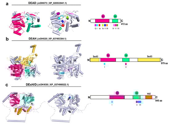 2.3. Structural Characterization of the JcDHX Candidates and Potential Subcellular Localization