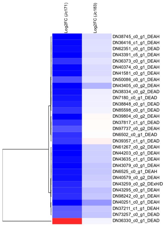 | DN43635_c1_g1_i2 | JcDHX71 | 99.72 | −0.13 | 0.012–1.999 | 0.001–3.936 | 0.032 | DR | DR |
