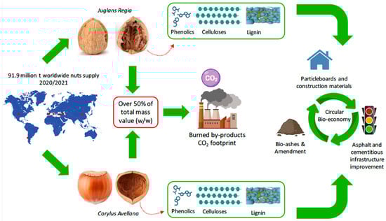 Manterola-Barroso, C.; Padilla Contreras, D.; Ondrasek, G.; Horvatinec, J.; Gavilán CuiCui, G.; Meriño-Gergichevich, C. Hazelnut and Walnut Nutshell Features as Emerging Added-Value Byproducts of the Nut Industry: A Review. Plants 2024, 13, 1034. https://doi.org/10.3390/plants13071034