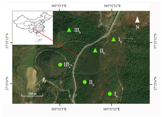 Location of the study area. Note: Ia, R. annae + Lyonia ovalifolia shrubs; IIa, R. annae shrubs; IIIa, R. annae + broad-leaved forest; Ib, R. irroratum + Lyonia ovalifolia shrubs; IIb, R. irroratum shrubs; IIIb, R. irroratum + broad-leaved forest.