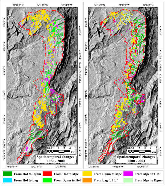 - Anzoategui, L.A.; Gil-Leguizamón, P.A.; Sanabria-Marin, R. Agricultural frontier and multi-temporality of vegetation cover in moorland of the Cortadera Regional Natural Park (Boyacá, Colombia). BOSQUE 2023, 44, 159–170. [Google Scholar] [CrossRef]