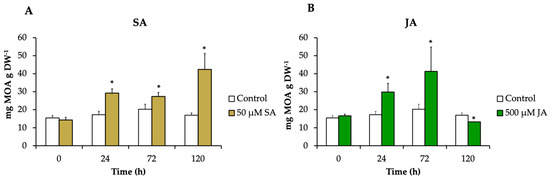 - Arif, Y.; Singh, P.; Siddiqui, H.; Hayat, S. Interplay between salicylates and jasmonates under stress. In Salicylic Acid-A Versatile Plant Growth Regulator; Hayat, S., Siddiqui, H., Damalas, C.A., Eds.; Springer: Berlin/Heidelberg, Germany, 2021; pp. 153–173. [Google Scholar] [CrossRef]