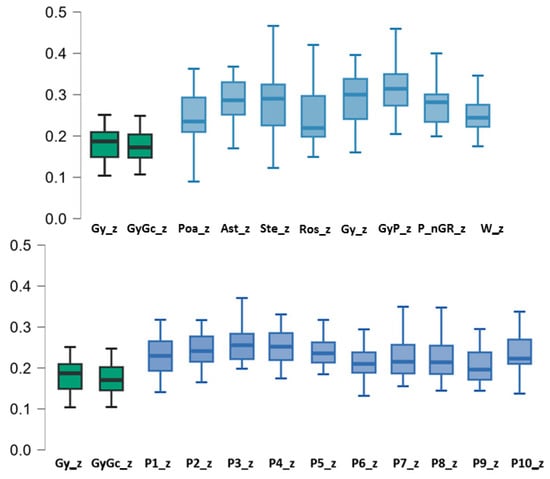 Box plots for the median z-values calculated for the various plant groups under consideration are depicted. Additionally, confidence intervals (95.0%) are presented.