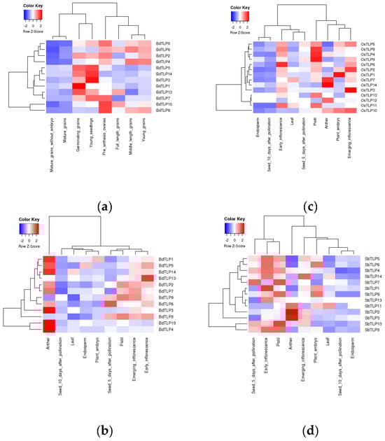 2.1. Sequence Identification of TLP Genes in Arabidopsis, Rice, Sorghum, and B. distachyon