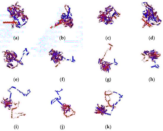 - Baek, M.; DiMaio, F.; Anishchenko, I.; Dauparas, J.; Ovchinnikov, S.; Lee, G.R.; Wang, J.; Cong, Q.; Kinch, L.N.; Schaeffer, R.D.; et al. Accurate prediction of protein structures and interactions using a three-track neural network. Science 2021, 373, 871–876. [Google Scholar] [CrossRef]