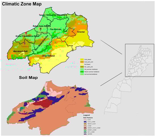 Climatic zone map and soil map of Morocco.