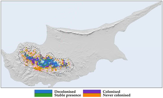 Studies investigating the impacts of losing foundational tree species in other Mediterranean hotspots (whether from drought, fires, or pests) indicate adverse effects on overall species richness, trophic cascade disruptions, and degradation of habitats relied upon by a diverse range of flora and fauna. Our findings resonate strongly with broader, dire assessments of biodiversity threats faced by vulnerable Mediterranean endemic tree species [11,46,48,51]. Cyprus’ island environment amplifies those risks and underlines the urgent need for holistic responses—prioritising biodiversity conservation through integrated habitat protection alongside mitigation strategies that consider future ecological and human needs in tandem.