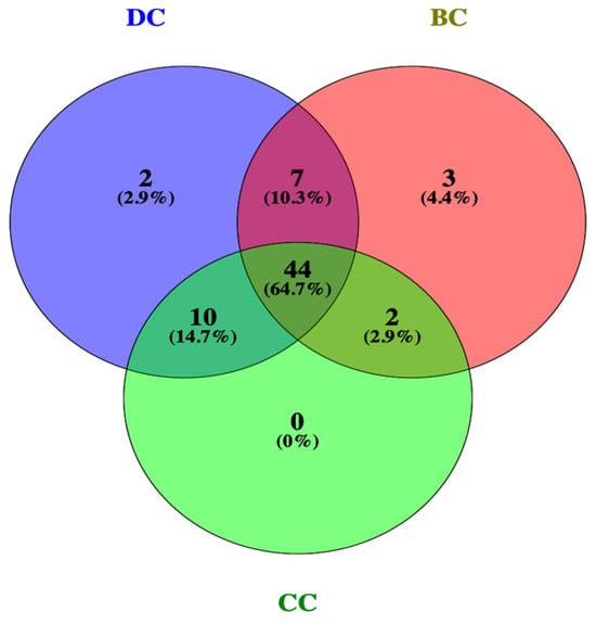 - Oliveros, J.C. VENNY. An Interactive Tool for Comparing Lists with Venn Diagrams. 2007. Available online: https://bioinfogp.cnb.csic.es/tools/venny/index.html (accessed on 18 August 2023).