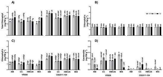 4.4. Chlorophyll and Carotenoid Contents in Leaves