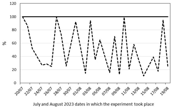Temperatures (°C) recorded in Pamplona in summer 2023 [].
