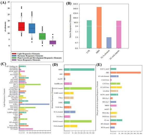 - Lescot, M.; Déhais, P.; Thijs, G.; Marchal, K.; Moreau, Y.; Van de Peer, Y.; Rouzé, P.; Rombauts, S. PlantCARE, a Database of Plant Cis-Acting Regulatory Elements and a Portal to Tools for in Silico Analysis of Promoter Sequences. Nucleic Acids Res. 2002, 30, 325–327. [Google Scholar] [CrossRef] [PubMed]