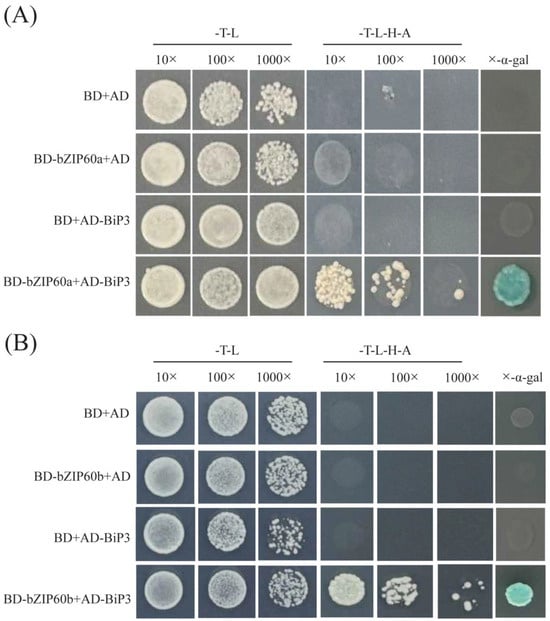 2.11. Y2H Displayed a Strong Protein–Protein Interaction of BcbZIP60a and BcbZIP60b with BcBiP3