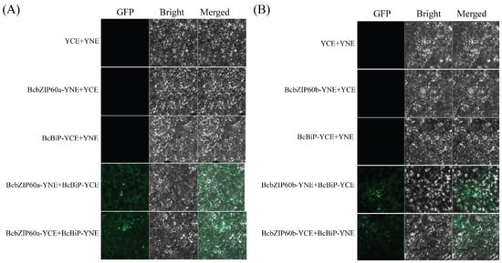 2.12. BiFC Assays Indicate the Interaction of BcbZIP60a and BcbZIP60b with BcBiP3 at Multiple Points