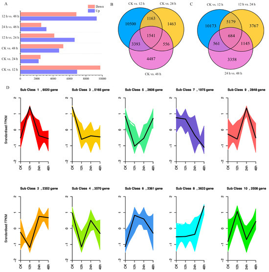 4.4. Analysis and Screening of Differentially Expressed Genes under Osmotic Stress