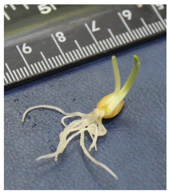 The laboratory seed germination method is widely used to assess the impact of individual environmental factors (e.g., low or high temperatures, salinity, moisture deficiency, ionizing radiation, heavy metals, nanoparticles, or magnetic fields) or their combined effects by means of biometric parameters (e.g., seed germination energy, seed vigor, seedling survival, and root and shoot lengths) at early stages of plant development [18,19,20,21,22,23,24,25,26]. In several studies, the roll culture method has been applied [19,20,25,27] or Petri dishes have been used [18,21,22,23,28]. In these cases, experiments are conducted in distilled water, aqueous solutions, soil extracts, and suspensions with the adverse factors. The advantage of the roll culture method—involving filter paper and a dense frame made of vellum (tracing paper)—lies in the use of up to 50–100 seeds per replicate, a uniform distribution of roots inside the roll, and the natural vertical position of seedlings [29]. Petri dishes create stable microclimatic conditions for germination, and evaporation of the working solution is minimized due to the cover. Other researchers employ vessels with soil mixtures [21,30]. An advantage of this seed germination method has been established in a study on root growth and development during evaluation of the quality of soil contaminated with heavy metals [31] as compared to soil extracts. The choice of a seed germination method for wild and cultivated plants depends on research objectives, characteristics of seeds of a particular plant species (e.g., hardseededness, the germination rate, and analyzed parameters), and the duration of the experiments.
