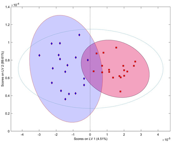 OPLS-DA [120] was used for discriminating the representative samples of the Vessalico ecotype from the French cultivars, using a MATLAB toolbox called PLS_toolbox by Eigenvector. The OPLS-DA model was validated and used to predict the class of test samples (i.e., Vessalico accessions not used for computing the OPLS-DA model). The quality of the model was evaluated in terms of R2 and Q2 and by means of misclassification matrices [121]. The most characterizing metabolites were selected on the basis of the Variable Influence on Projections (VIP values) of OPLS-DA.