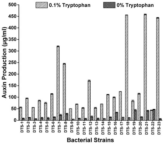 - Saleem, S.; Iqbal, A.; Ahmed, F.; Ahmad, M. Phytobeneficial and salt stress mitigating efficacy of IAA producing salt tolerant strains in Gossypium hirsutum. Saudi J. Biol. Sci. 2021, 28, 5317–5324. [Google Scholar] [CrossRef] [PubMed]