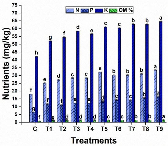 - Çığ, F.; Sönmez, F.; Nadeem, M.A.; Sabagh, A.E. Effect of biochar and PGPR on the growth and nutrients content of einkorn wheat (Triticum monococcum L.) and post-harvest soil properties. Agronomy 2021, 11, 2418. [Google Scholar] [CrossRef]