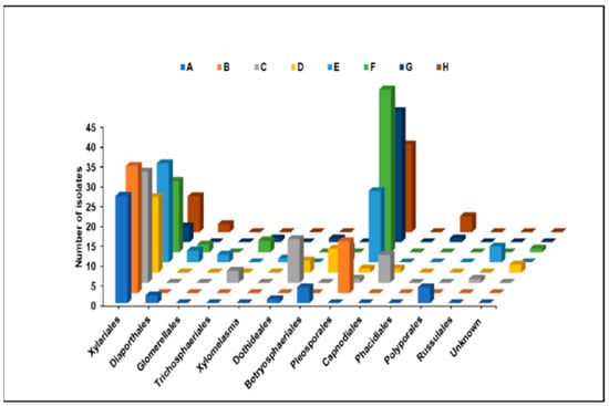 - Slippers, B.; Wingfield, M.J. Botryosphaeriaceae as endophytes and latent pathogens of woody plants: Diversity, ecology and impact. Fungal Biol. Rev. 2007, 21, 90–106. [Google Scholar] [CrossRef]