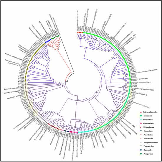 4.4. Phylogenetic Analysis of the Fungal Endophytes