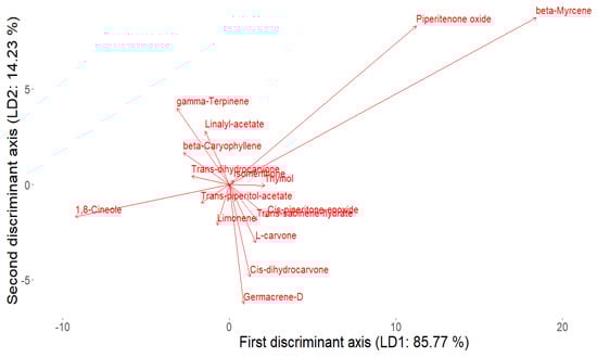 | Piperitone | 17.08 | 1249 | 1249 | 0.00 ± 0.00 | 0.00 ± 0.00 | 0.00 ± 0.00 | 0.00± 0.00 | 0.00 ± 0.00 | 0.00 ± 0.00 | 0.00 ± 0.00 | 1.35 ± 0.06 | 0.00 ± 0.00 | 0.00 ± 0.00 | 0.00 ± 0.00 |